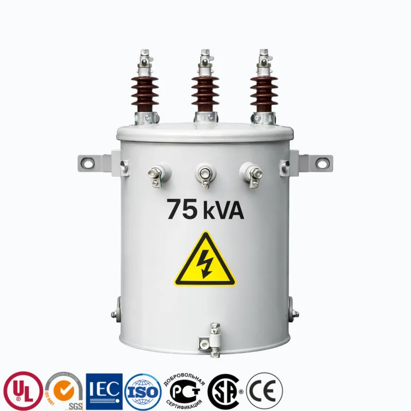 Application Case: Used in a residential utility distribution upgrade, a 75 kVA pole mounted transformer provided stable 120/240 V power to multiple households through an overhead utility pole network.